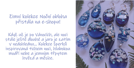 Dary přírody, ať už se jedná o rozličné květy či lístky, zvěčňuji v křišťálově čiré epoxidové pryskyřici. Nejblíže mému srdci jsou však šperky s lesní tématikou - kapradí, lišejníky, malé houbičky, šišky, mech nebo lesní jahody.