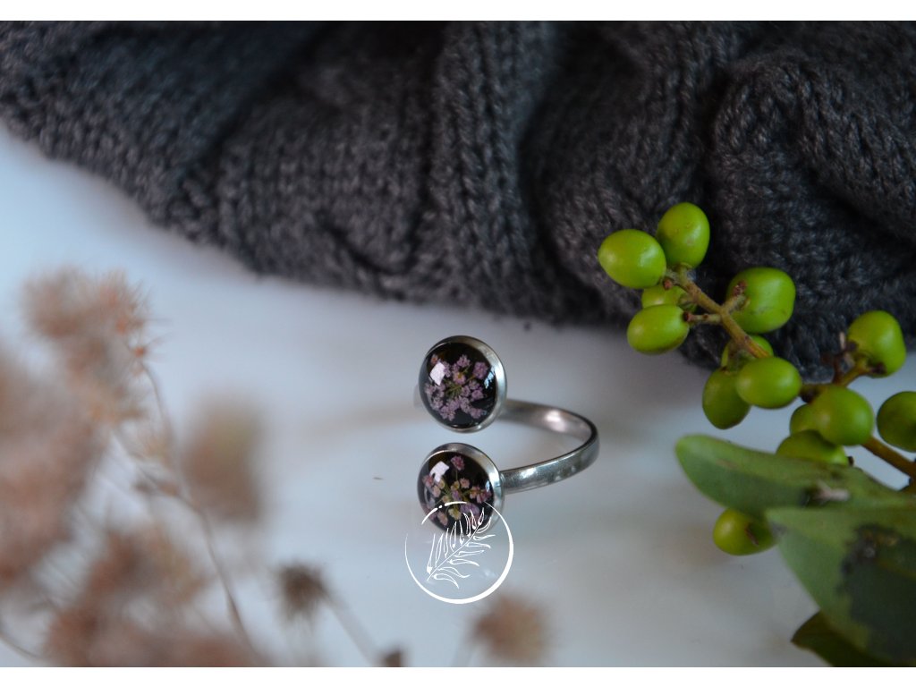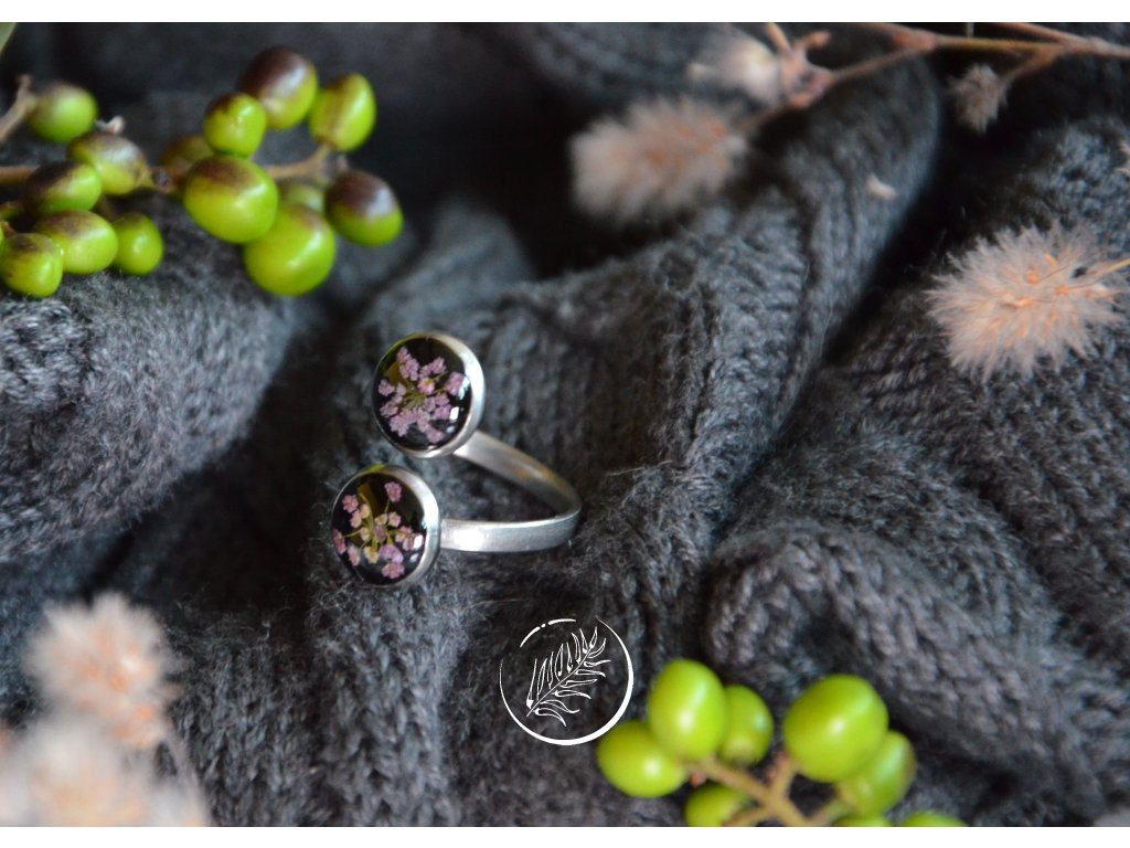 Dvojitý prstýnek s růžovofialovým kerblíkem na černém pozadí. Nastavitelná velikost.