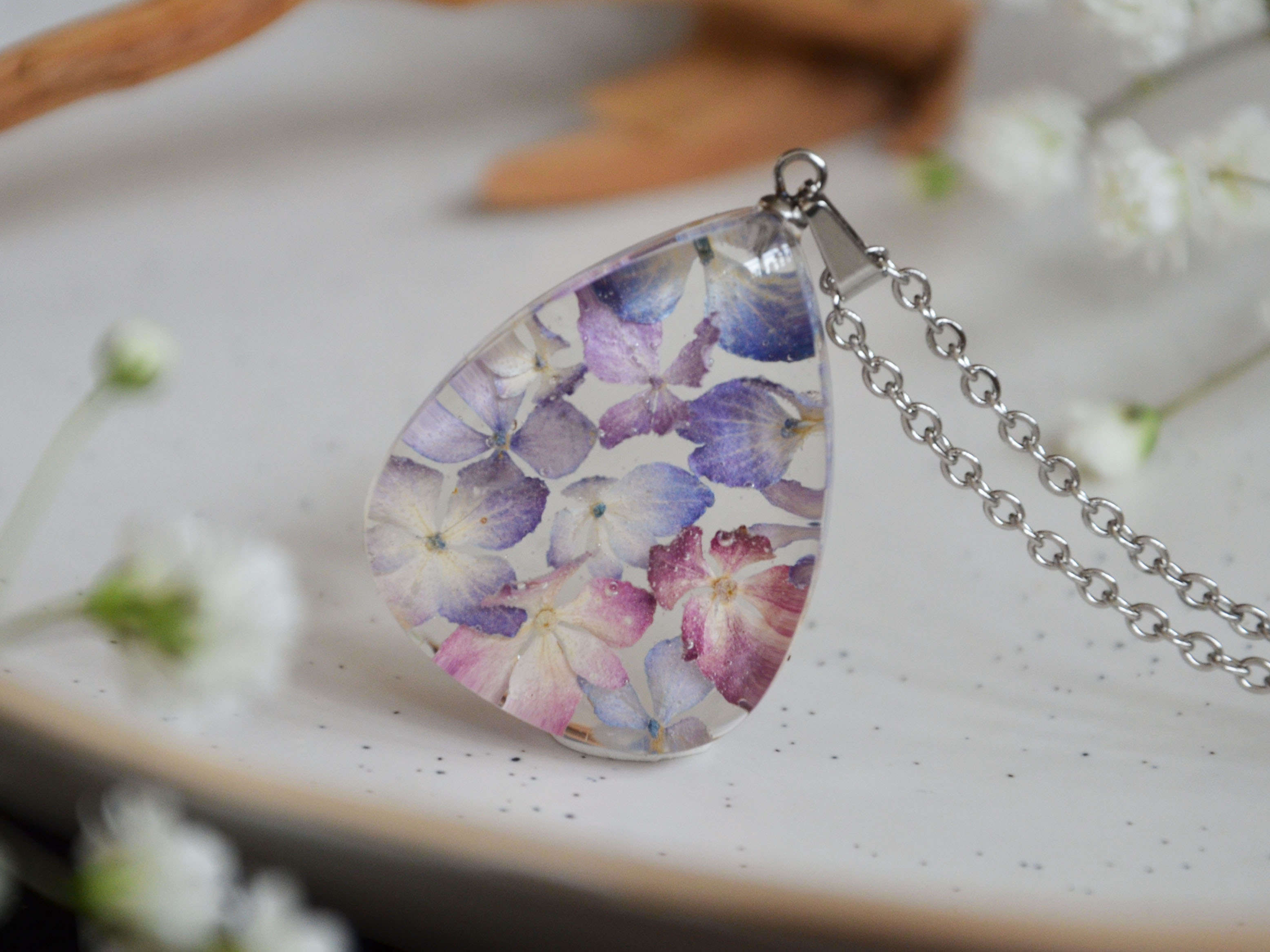 Hortenzie jsou okrasné keře nebo popínavé rostliny známé svými bohatými kulovitými květenstvími, která mohou být bílé, růžové, modré nebo fialové v závislosti na druhu a pH půdy. Pocházejí z východní Asie a Ameriky a patří mezi nejoblíbenější zahradní rostliny díky své nenáročnosti a dlouhé době kvetení. Kromě okrasné funkce symbolizují hortenzie v květomluvě vděčnost, porozumění a upřímnost. Šperky s květy hortenzie jsou proto tím pravým dárkem pro každou nadšenou zahradnci!
