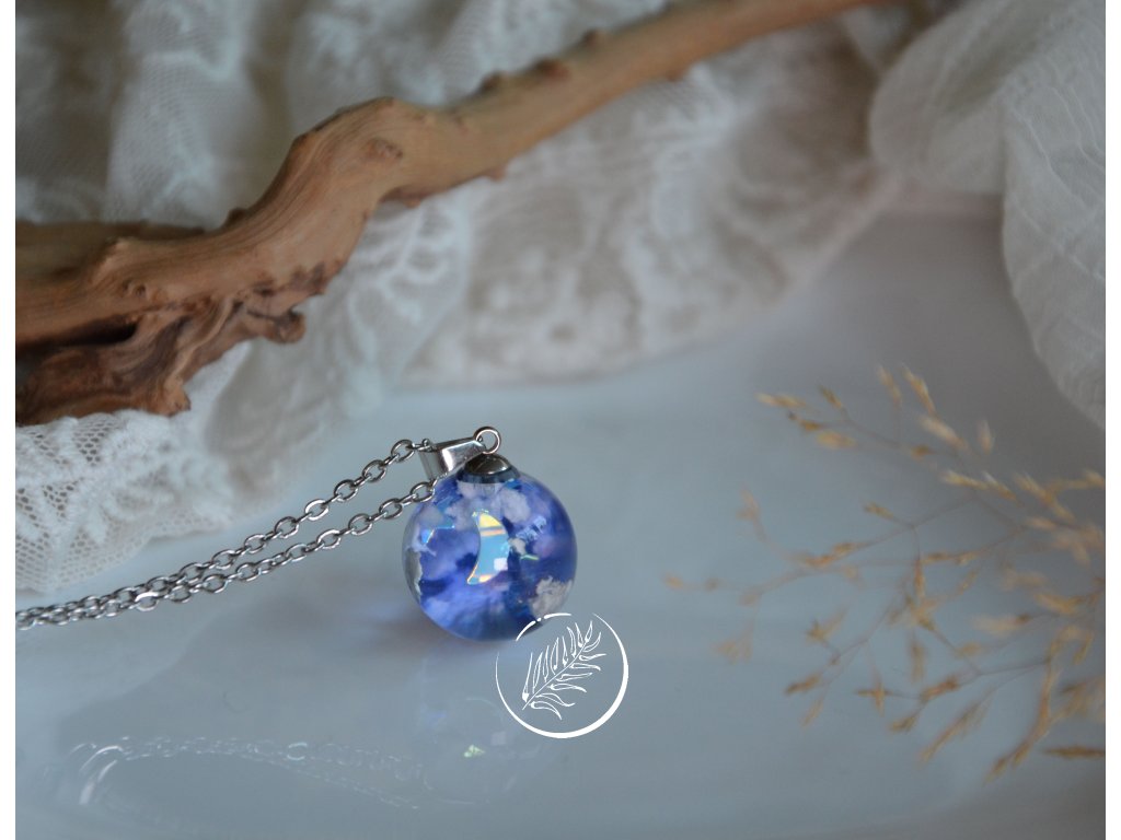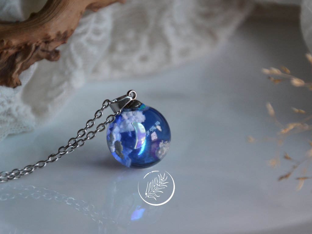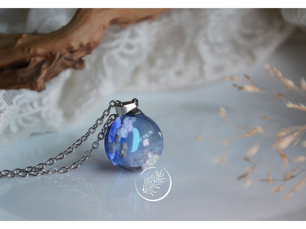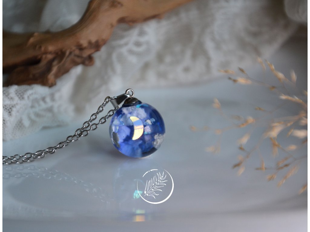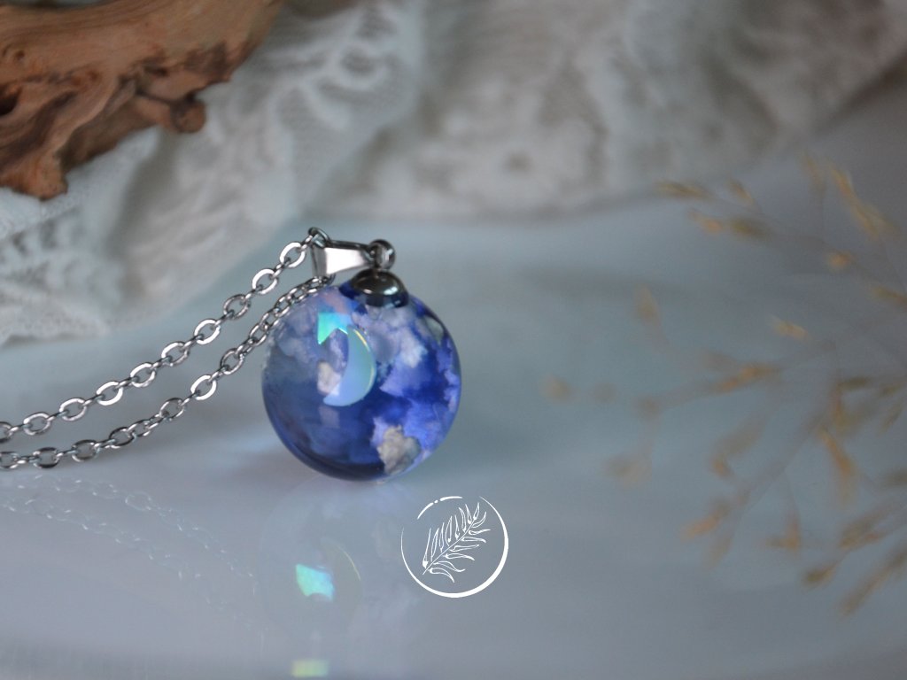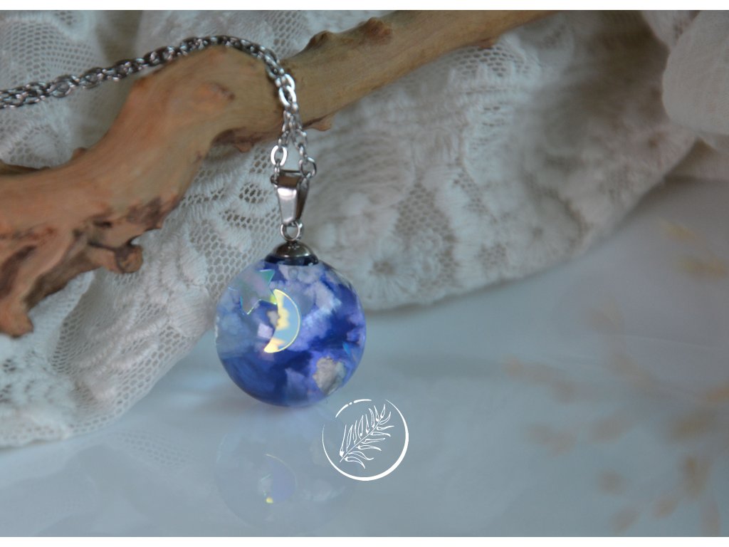 Přívěsek ve tvaru kuličky s noční oblohou. Průměr 1,8 cm. Veškeré komponenty jsou z chirurgické oceli.