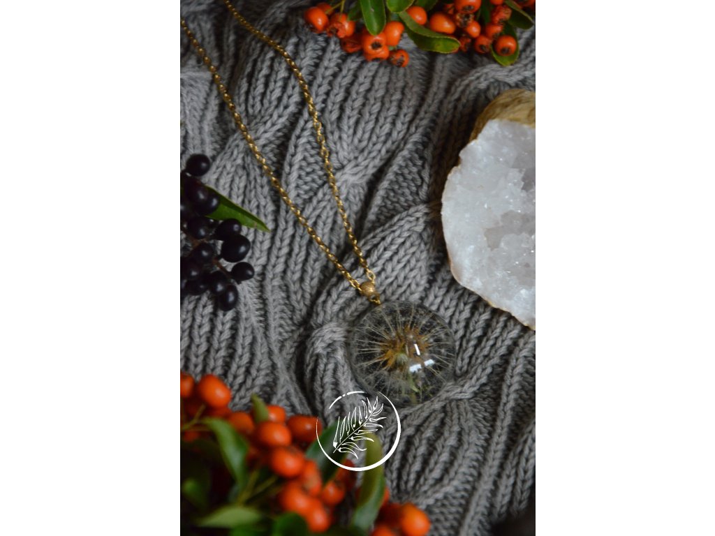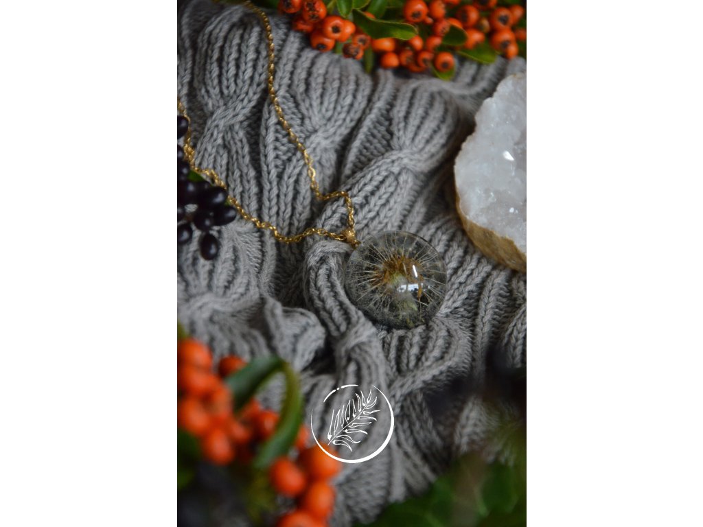 Přívěsek s odkvetlou pampeliškou na černém podkladu. Průměr kabošonu 25mm. Veškeré komponenty jsou z pozlacené chirurgické oceli.