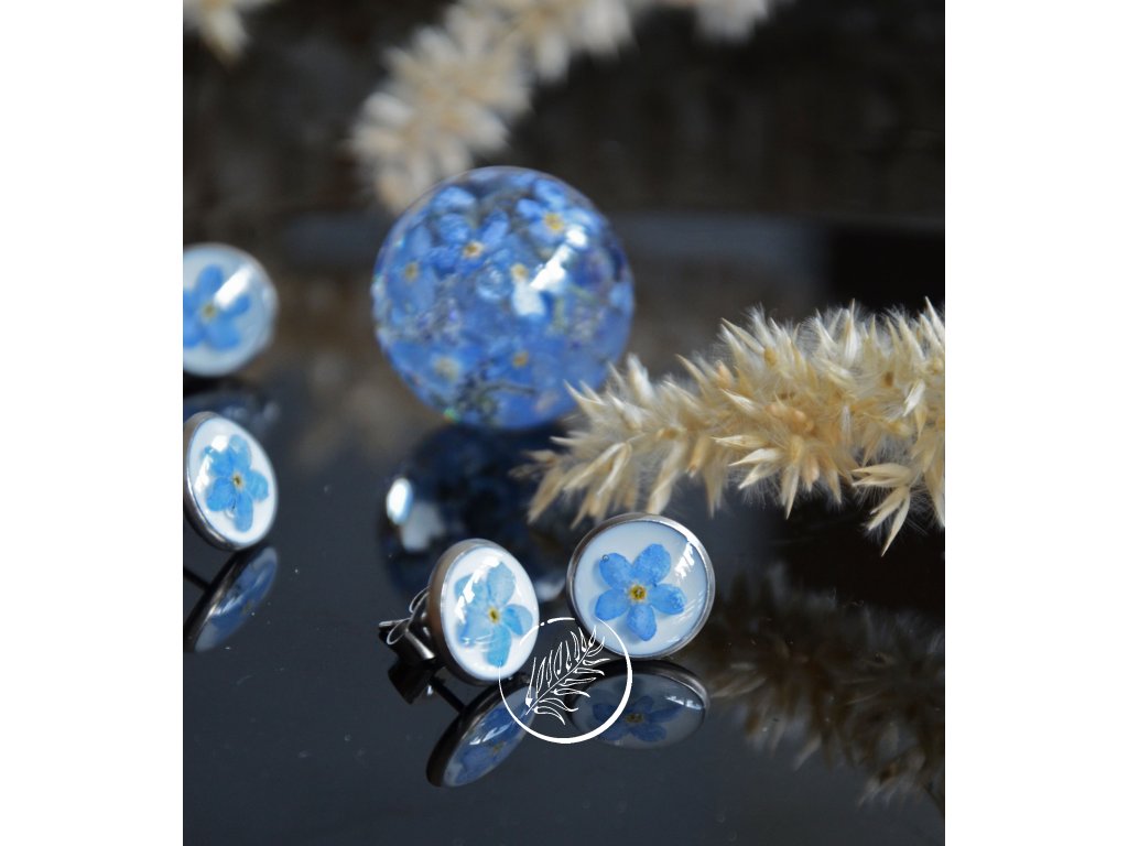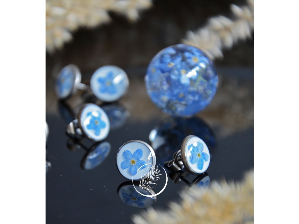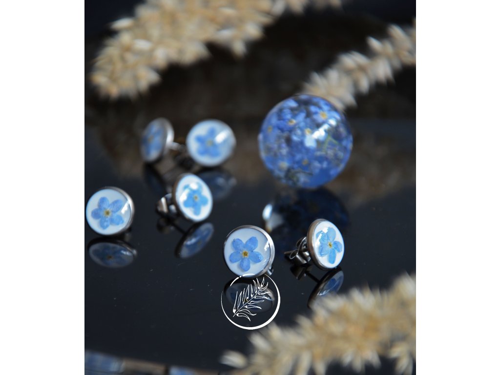 Puzetky s pomněnkami na bílém pozadí. Průměr vnitřku lůžka 10mm, celkem 12mm. Chrurgické ocel.